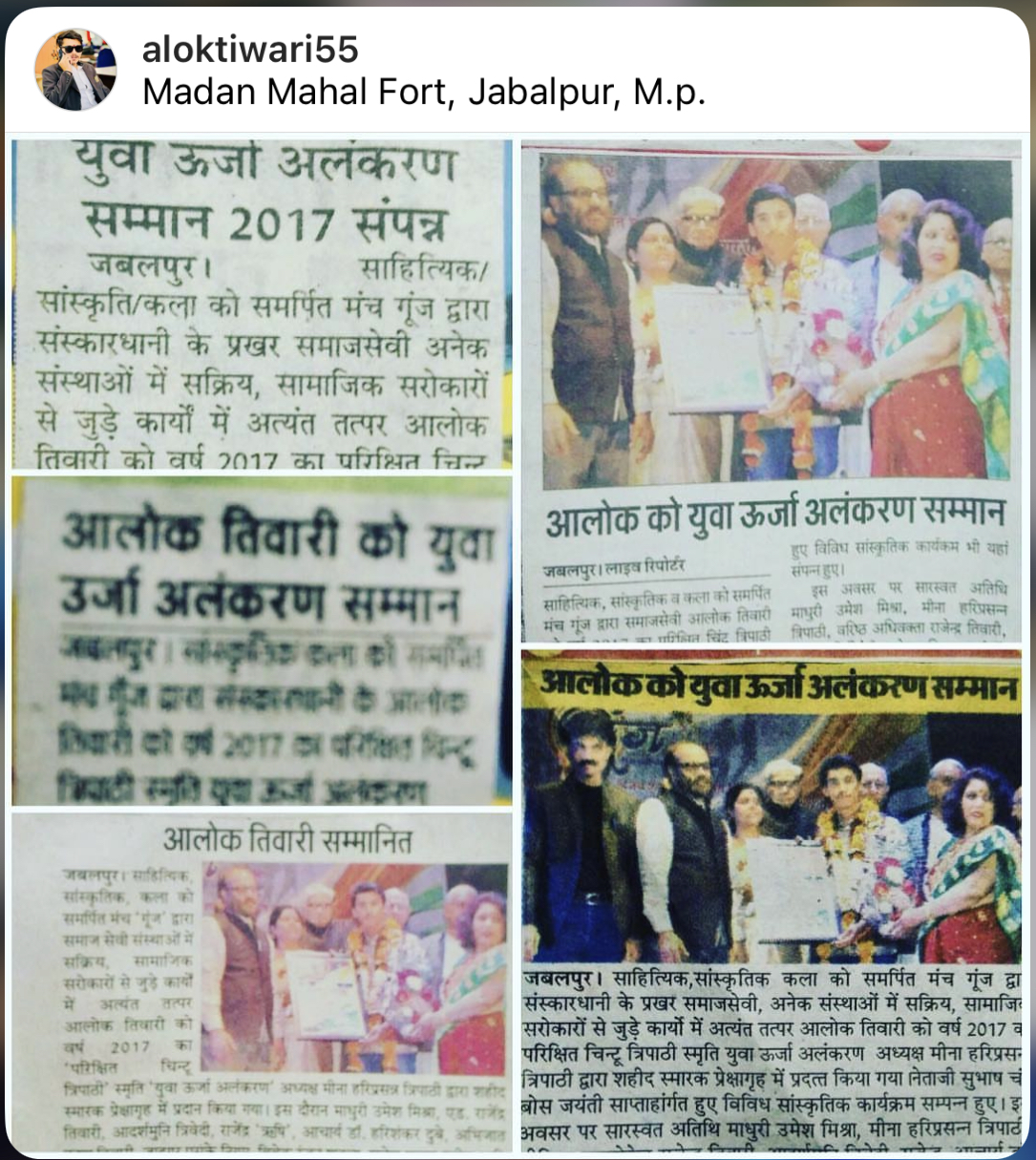 He is an Advocate (Criminal Lawyer) & Politician Of Jabalpur Madhya Pradesh. Alok Tiwari (born 9 Nov 1993, Satna District in M.P) is a politician from BJP. He is a President of Jabalpur Sewa Sangh (NGO), and Mahavidyalayin Pramukh of RSS. And He is son of Anil Tiwari (Govt. Advocate MP State) and his mother is Anila Tiwari (Principal of Jabalpur Law Collage). and in 2017 Awarded with Yuva Urja Samman (Award).